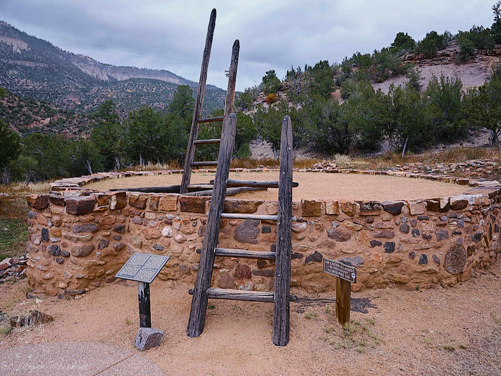When we reach the Jemez Historic Site, I head out for what I know will be a short look about while Elizabeth sits in the car. It is beginning to sprinkle as I stop to see the Kiva for this settlement.